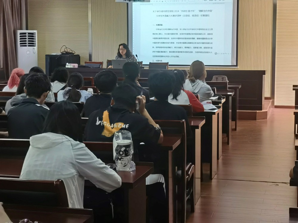 5月29日下午,日语系在4-217召开学科竞赛说明会及日语专四动员大会。本次动员大会由日语系副主任马可英老师主持,日语系教师以及大一、大二学生参加了本次会议。