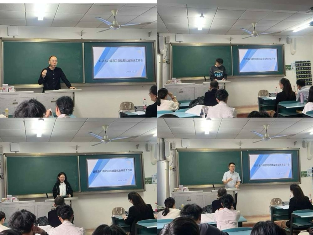 10月17日下午,我院日语系召开日语专业2021级见习总结及就业推进会,日语系全体教师、2021级班主任王晓春老师以及2021级全体学生参加了本次会议。