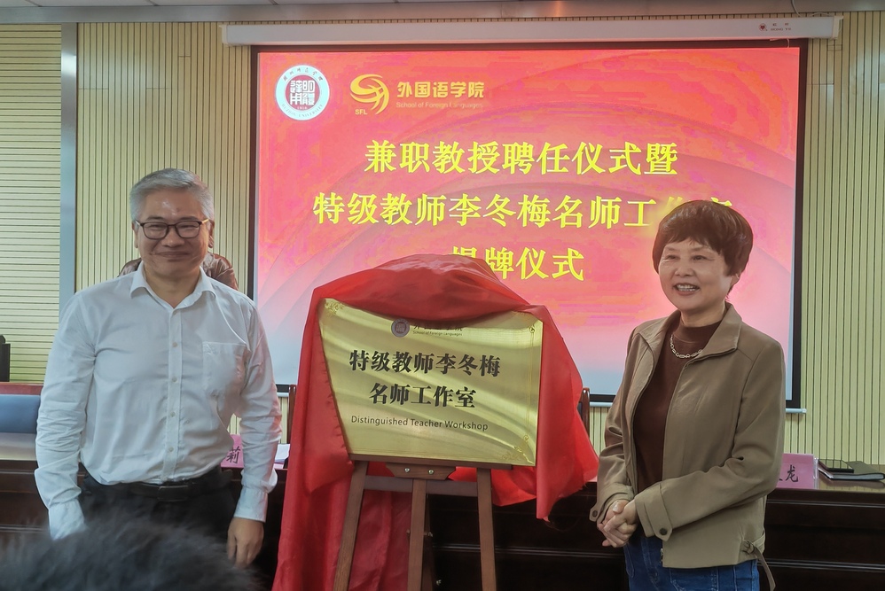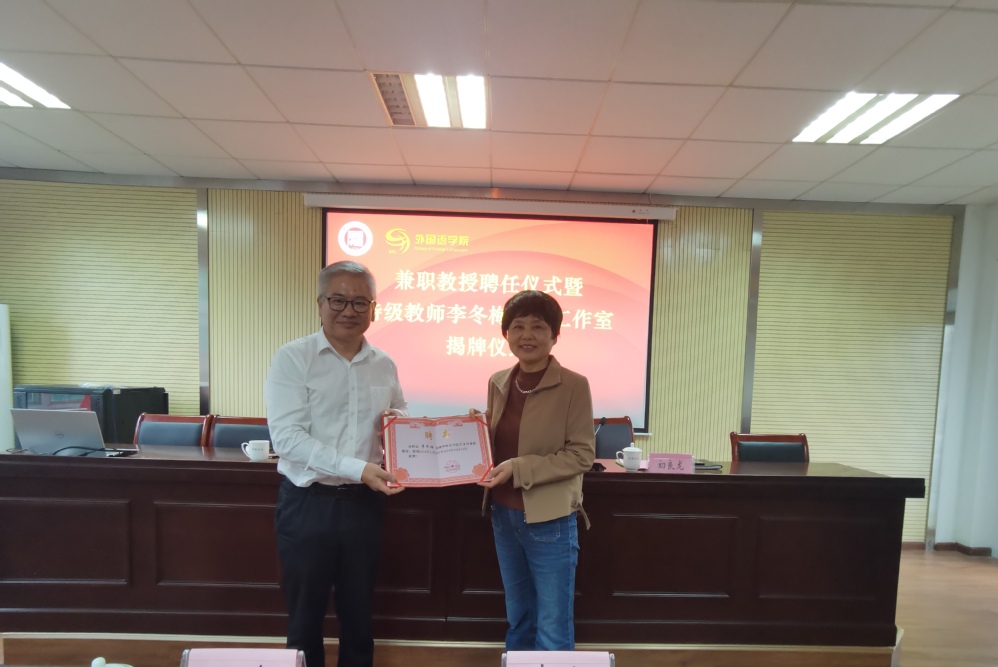 初良龙为李冬梅颁发优米app怎么下载软件教学型兼职教授聘书,并与李冬梅共同为“特级教师李冬梅名师工作室”揭牌。