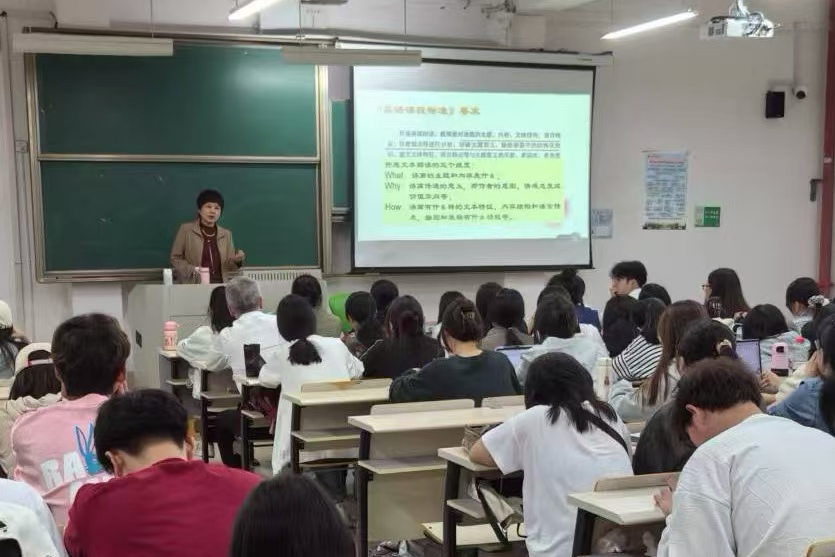 随后,工作室启动首场活动。李冬梅为我院师生作题为《新教材文本解读与微格教学》讲座,为师范生微课展示进行点评,并围绕“如何有效进行微格教学指导与考核”与工作室成员和师范技能考核教师进行深入交流。