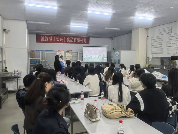 活动中,邹鑫一行首先受到了波路梦公司的热情接待。在公司相关负责人的引导下,大家深入生产一线,参观了现代化的食品加工厂房,亲眼见证了从原料筛选到成品包装的每一个严谨细致的生产流程。通过实地参观,师生们不仅对企业的生产规模、技术实力有了直观了解,还深刻感受到了企业文化和对产品质量的严格把控。