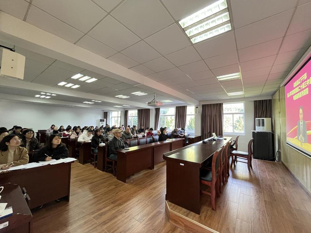 叶莉首先传达学校党委对组织开展学习贯彻党的二十届三中全会的相关文件精神和要求,介绍了四次集中学习的具体安排,并对此次培训提出要求。接着全体教职工一同观看了中央党校(国家行政学院)研究室主任、教授沈传亮《深入学习贯彻习近平总书记关于全面深化改革的一系列新思想、新观点、新论断和党的二十届三中全会精神》的视频讲座。沈传亮围绕深刻领会和把握进一步全面深化改革的主题、重要性和必要性,深入学习贯彻习近平总书记关于全面深化改革的一系列新思想、新观点、新论断,深刻领会和把握进一步全面深化改革的重大原则三个方面进行解读。