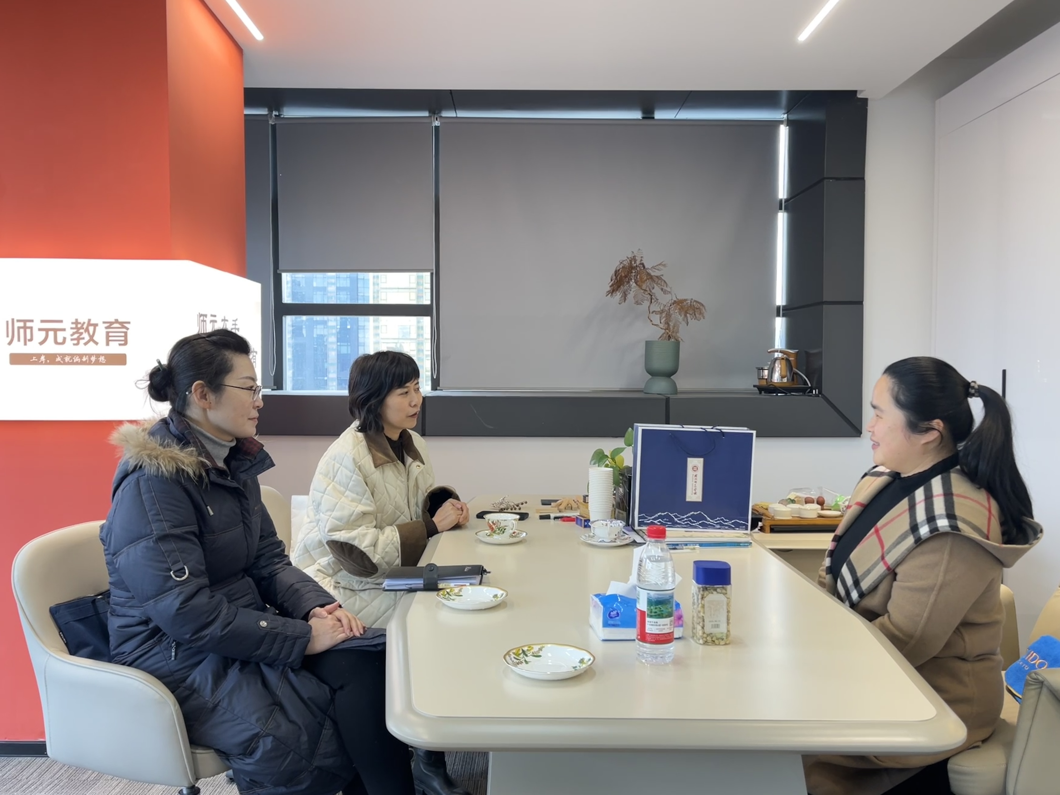 随后,叶莉一行前往鄞州区,看望了2013届校友王嘉燕。王嘉燕现任师元教育培训机构相关负责人,多年来致力于教育事业发展,为培养更多优秀人才贡献力量。在交流中,王嘉燕分享了自己从校园到职场的成长历程,以及在教育行业中的探索与实践。邹鑫对王嘉燕在教育事业上的坚守和奉献表示钦佩,并希望未来能进一步加强校企合作,共同推动教育事业的创新与发展。