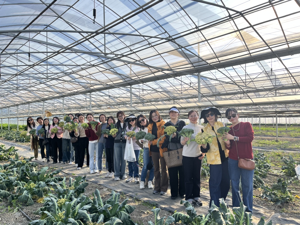 做完手工后,女老师们走进蔬菜果棚,体验田园采摘。进入棚内,红艳艳的草莓、绿油油的西兰花,顿时让女职工心情舒畅。棚间传出阵阵欢声笑语,大家交流着鲜嫩果蔬的挑选方式和采摘的技巧,体验着田园劳作的乐趣,收获满满。