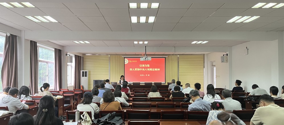 会议首先由党委书记叶莉上《以案为鉴,深入贯彻中央八项规定精神》廉政党课,传达学习中共中央、国务院印发的《党政机关厉行节约反对浪费条例》,同时,深刻剖析了近期违反中央八项规定精神的4个反面典型案例,以案为鉴、警钟长鸣,教育引导全体教职工增强纪律和规矩意识,切实做到知敬畏、存戒惧、守底线。