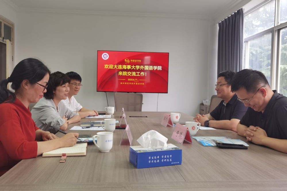 6月26日,大连海事大学外国语学院党委书记邵广、英语系主任于洋,来我院就党建与学科建设工作开展专题交流。学院党委书记叶莉、副院长宁强、英语系主任廖晓丹参加座谈。