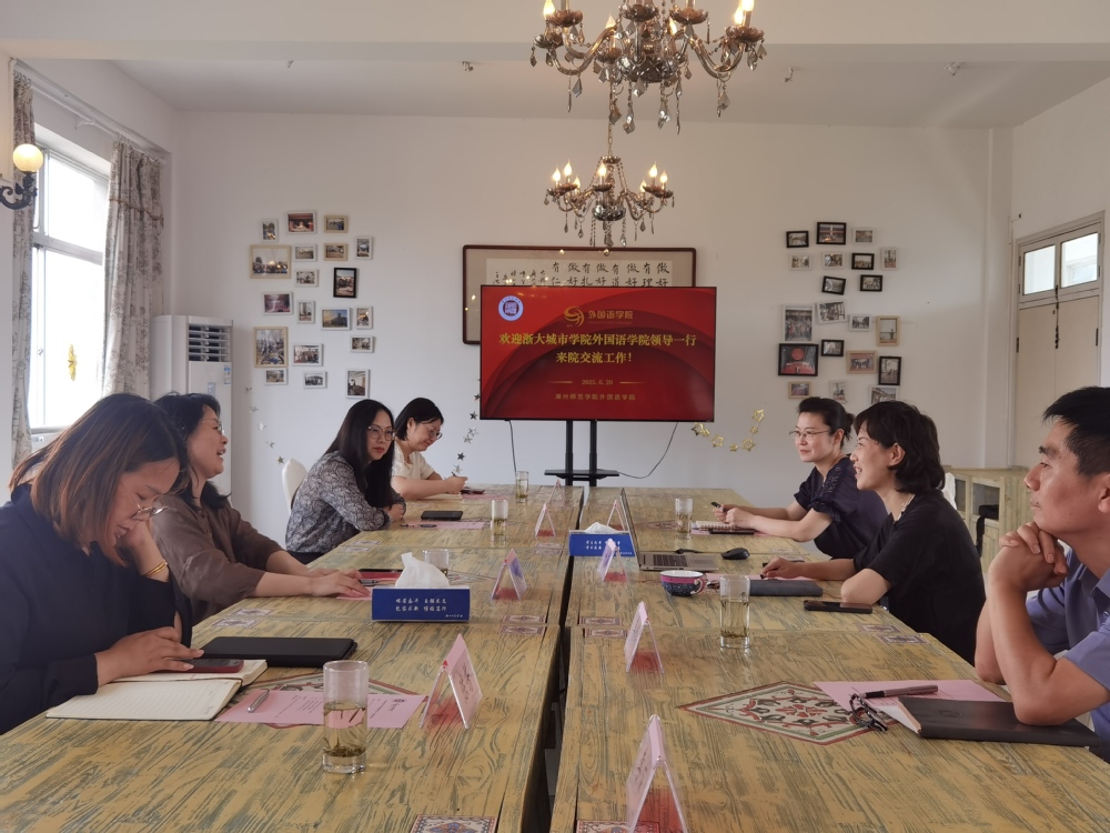 6月20日,浙大城市学院外国语学院党委书记戴笑笑、副书记赵君波、副院长陈芳等一行来院调研交流工作,我院党委书记叶莉、副院长李冰、党委副书记邹鑫等参加座谈。
