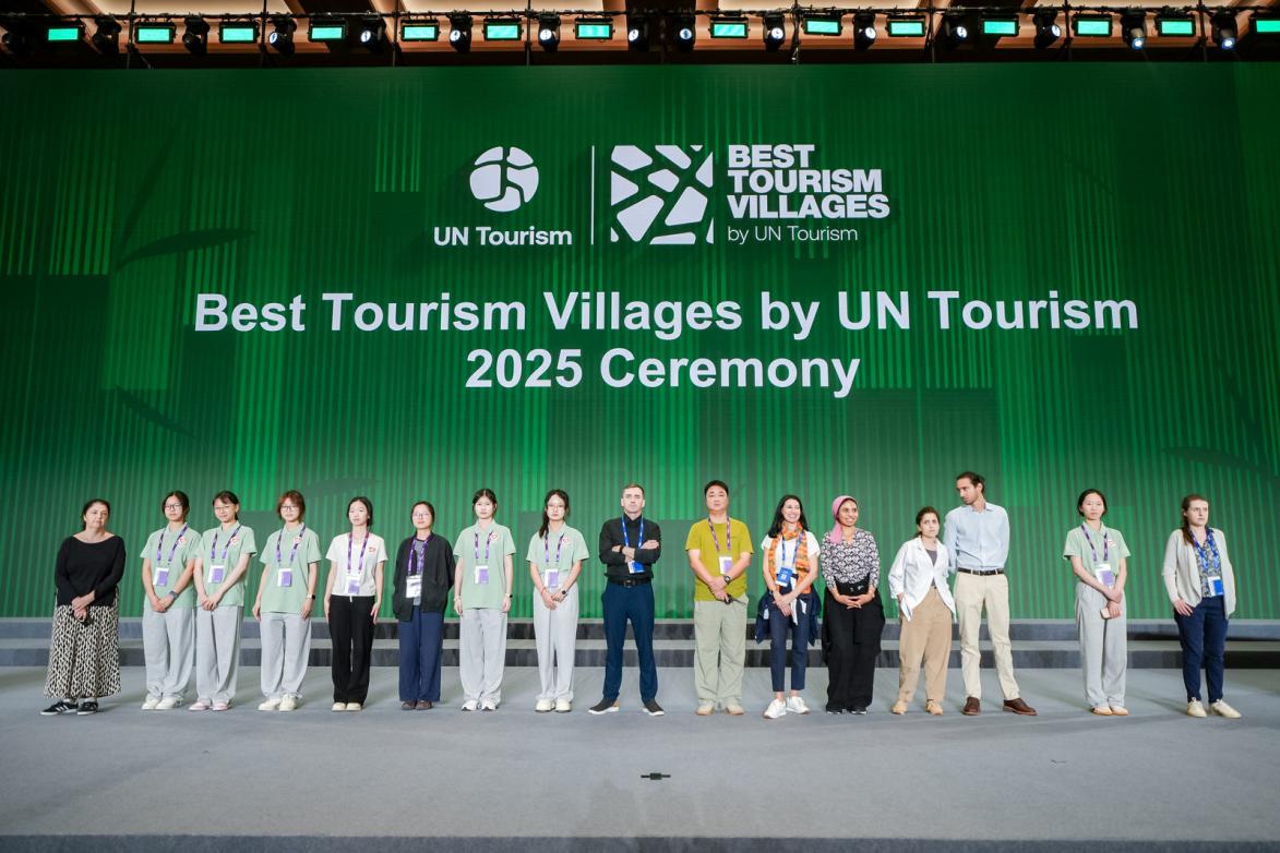10月17日,2025年联合国旅游组织“最佳旅游乡村”颁奖典礼暨第三届“最佳旅游乡村”网络年度会议在湖州安吉圆满举行。联合国旅游组织揭晓2025年“最佳旅游乡村”名单,我国的浙江省荻港村、江苏省东罗村、贵州省黄岗村和四川省基卡依村入选。联合国旅游组织代表,各国代表团团长,世界最佳旅游乡村代表等国内外350余名嘉宾相赴本次盛会。我院选派宁强、姚振军、王卉等3名教师及13名学生志愿者参与本次活动,工作涉及对接联合国旅游组织秘书处进行会议筹办、外宾一对一联络对接、接机接站、场控翻译等志愿服务岗位,他们以专业高效的服务和热情饱满的姿态全程参与,成为这场国际盛会的一道亮丽的青春风景线。
