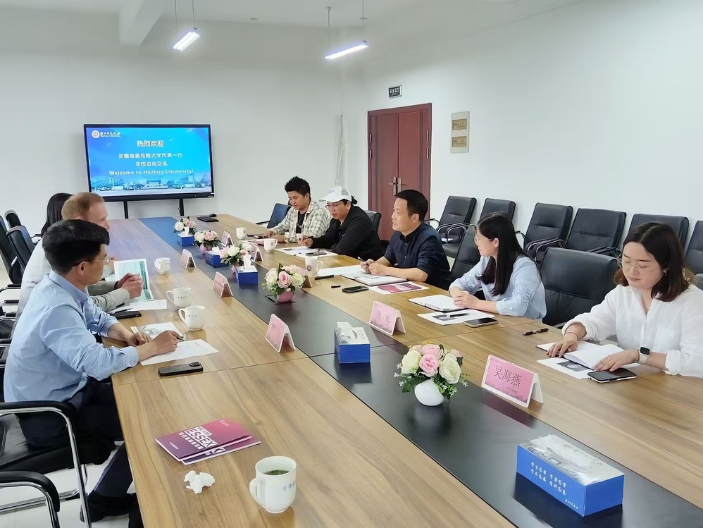 曾万泉对埃塞克斯大学来访人员表示欢迎,并简要介绍了学校的历史发展、专业设置与师资队伍等相关情况,表达了与埃塞克斯大学在体育运动相关专业学生联合培养、师生交流等方面开展合作的意向。