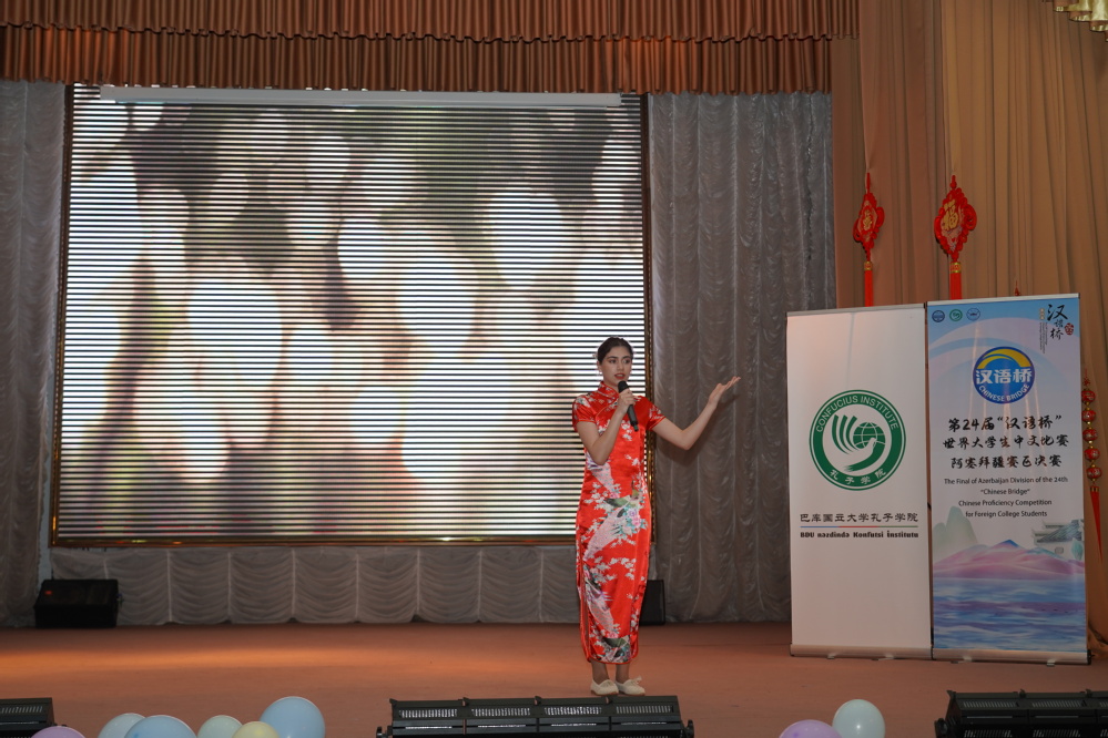 5月21日,第24届“汉语桥”世界大学生中文比赛阿塞拜疆赛区决赛在首都巴库落下帷幕,中国驻阿塞拜疆大使鲁梅出席此次活动。阿各高校代表、媒体代表、在阿华人华侨、中资企业代表和孔院师生等200余人参加。阿塞拜疆语言大学孔子学院的5名学员王秀英(Fatima Aliyeva)、王玉明(Elmira Mammadli)、涂可佳(Turkan Feyzullazada)、赵佳兰(Nigar Aslanova)和赵兰兰(Laman Farajova)参加此次决赛。