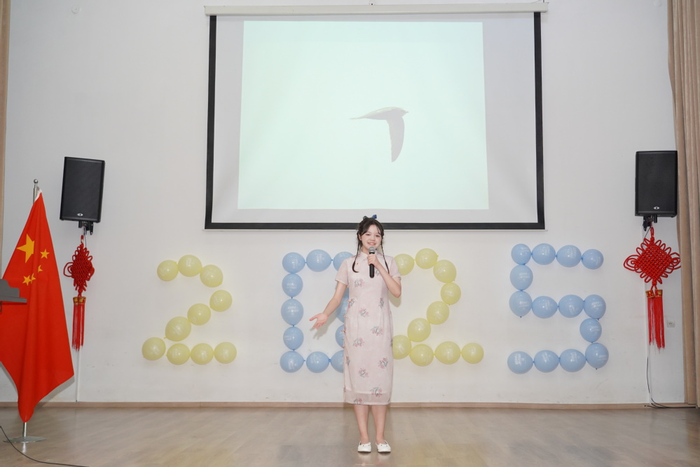 在随后的才艺展示环节中,选手们的表演百花齐放,创意十足。有选手将书法与太极巧妙结合,呈现了一场别具特色的表演;有人激情朗诵《沁园春·长沙》;有人深情献唱歌曲《我的中国心》;葫芦丝曲《月光下的凤尾竹》婉转悠扬,令人陶醉;古筝演奏音色清亮,旋律优美;单口相声和冷笑话集锦幽默风趣,观众掌声不断;太极扇表演则体现了中国传统武术的刚柔并济;陶埙演奏与书法诠释的《虞美人·听雨》展现了诗词的意境之美,此外,还有选手跳了一段蒙古舞后,用阿塞拜疆国宝乐器塔尔琴演奏了《赛马》,用心融合了中国与阿塞拜疆文化文化。