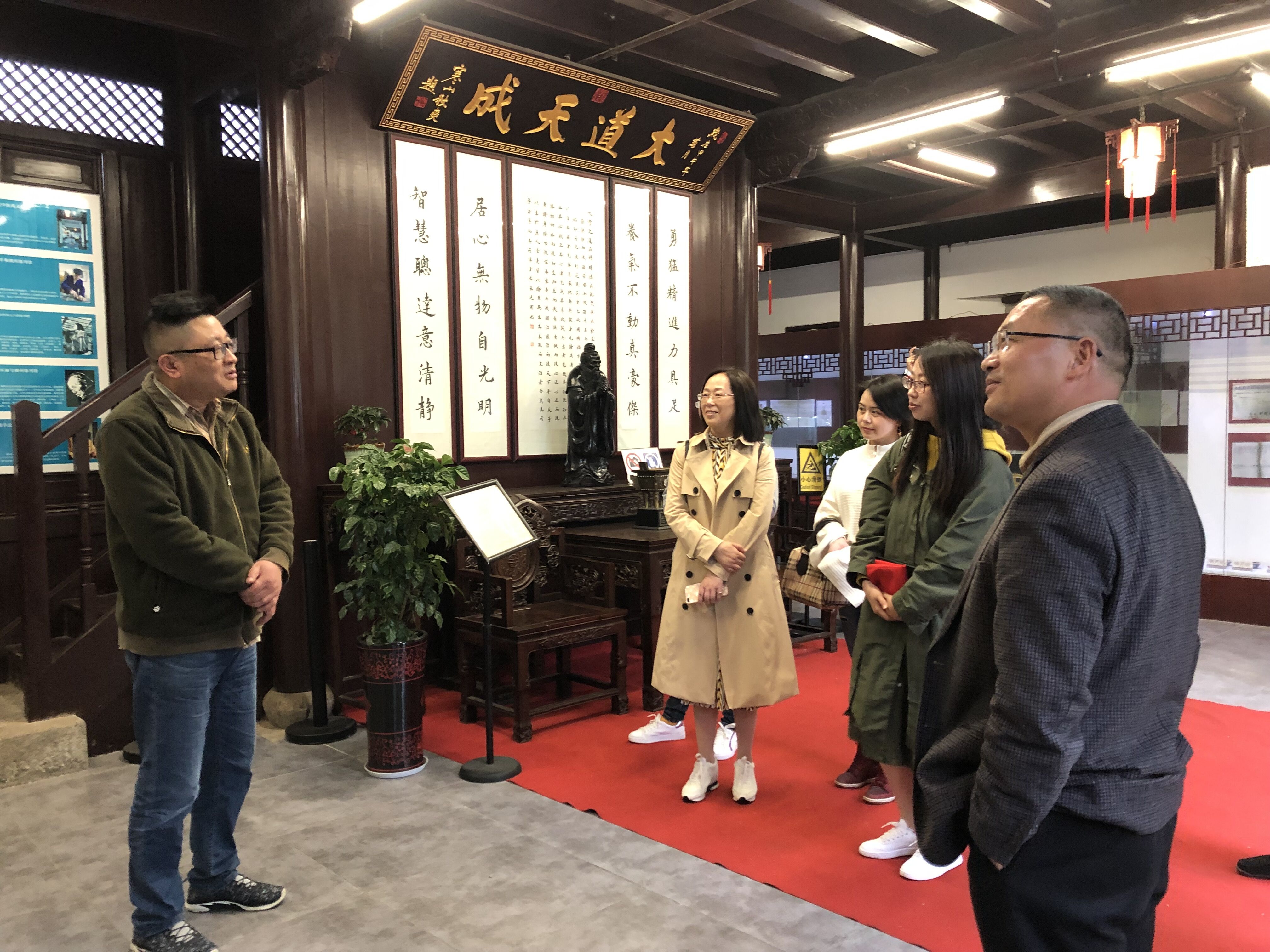 沈天成堂红色党建馆是吴兴区基层党员党性教育基地,位于衣裳街历史文化街区,设有展览主题浮雕墙、红色传承板块、志愿者板块、实物展示柜及旧时沈天成堂药房场景等多个区域。支部全体党员认真参观了展馆,对湖州地区近代革命史中的重大事件和人物照片、湖州解放前后的历史背景、以及其他湖州特色历史文化进行了详细学习和了解。校公共事务管理处副处长、采购管理中心主任沈艺结合现场的图片和相关介绍,重点围绕湖州的“红色革命的重大历史人物和事件”,为全体支部党员上了一堂精彩的“革命教育”主题党课。