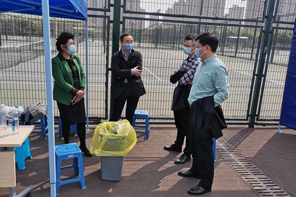 校长蒋云良、副校长潘音在有关部门负责人陪同下来到现场视察核酸检测工作,详细询问工作组织、检测物资配备、后勤服务保障等情况,并向现场工作人员、志愿者表示感谢和慰问。