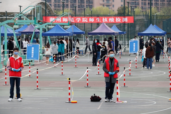 在学校各部门的密切协作和志愿者们的悉心引领下,整个检测过程在三个半小时内顺利完成。校防控办副主任夏秀琴表示:“本次活动的组织高效、有序,这主要得益于三个方面:一是附属医院的大力支持,院长亲自带领60人的医疗团队来支持此次活动;二是校内各防控相关工作组的积极支持和配合,实现了对师生的快速摸排和组织,让活动有序高效进行;三是前期积累了一定的实战经验,从场地的布置到人员的组织都非常高效有序。”