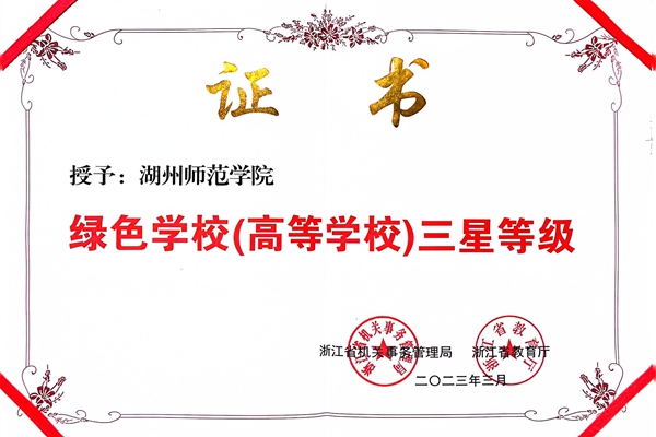 近日,浙江省机关事务管理局、浙江省教育厅公布了第二批绿色学校(高等学校)名单,我校荣获“浙江省绿色学校(高等学校)”称号,被授予绿色学校(高等学校)三星等级。浙江省绿色学校(高等学校)创建评价分为三星(优秀)、二星(良好)、一星(合格)三个等级,此次获评三星等级,是对我校绿色学校创建工作的充分肯定。