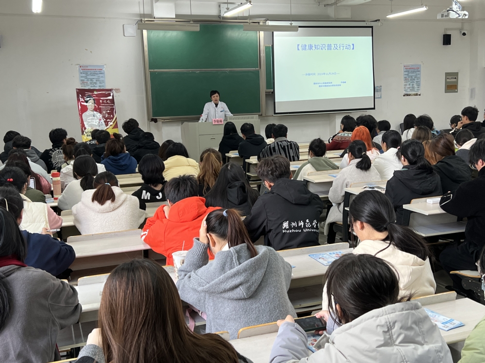 在第36个世界艾滋病日来临之际,为普及艾滋病防治知识,增强大学生预防艾滋病及自我保护意识,11月29日下午,校门诊部、校爱卫会、湖州市中心医院共同举办了以“青春有爱 健康无‘艾’”为主题的艾滋病防治宣传讲座,200余名学生参加。