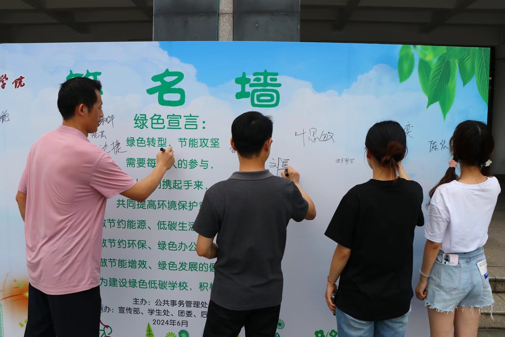 近日,我校组织开展节能展板宣传和节能践诺签名活动。本次围绕“绿色转型,节能攻坚”主题开展,是学校2024年度节能宣传月活动之一。活动由公共事务管理处主办,宣传部、学生处、团委、后勤服务中心等单位承办。