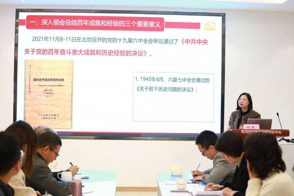 11月23日下午,机关学工部党支部召开学习贯彻党的十九届六中全会精神主题党日活动,邀请马克思主义学院何燕博士就全会精神进行专题解读。