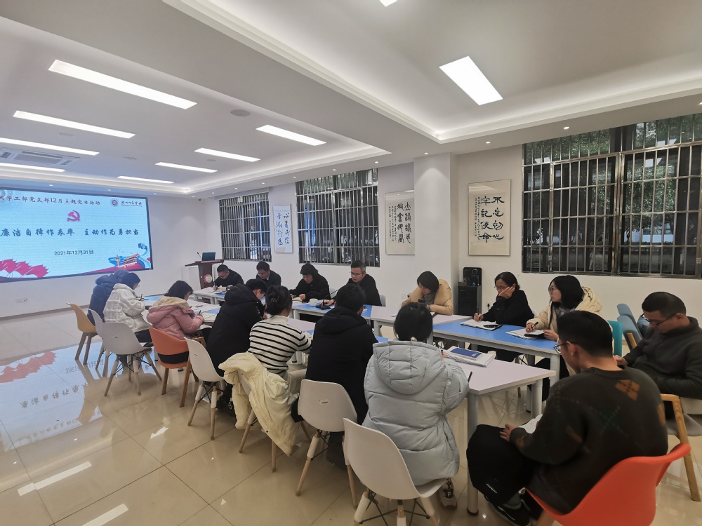 为进一步强化支部党员廉洁意识和担当意识,12月31日下午,机关学工部党支部开展了以“廉洁自律作表率,主动作为勇担当”为主题的党日活动。