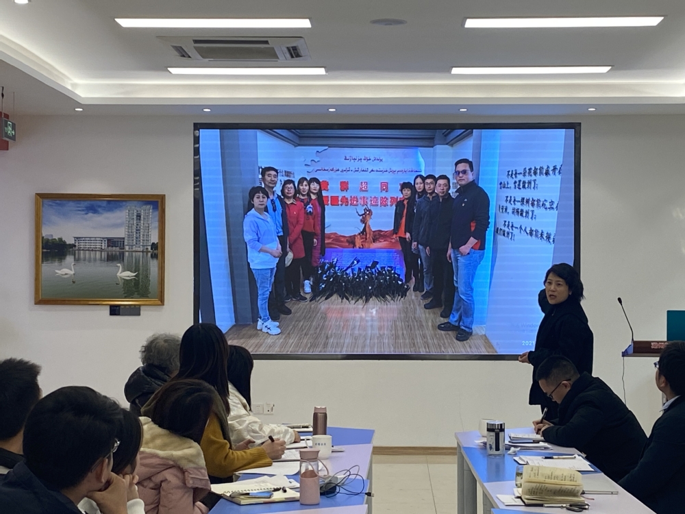 支部书记黄薇为全体党员讲授了题为《大漠深处有芬芳》的主题党课,分享了自己赴新疆阿克苏职业技术学院支教的经历和感悟。她以“马兰花”、“雪莲花”和“胡杨”三种极具代表性的当地植物为比喻,深情地讲述了中国工程院院士林俊德、湖州市第八批援疆指挥部指挥长黄群超和宁波镇海中学姚仁汉等为代表的浙江援疆人,用生命和汗水诠释“为国家分忧、为新疆奉献、为浙江争光”的感人事迹。