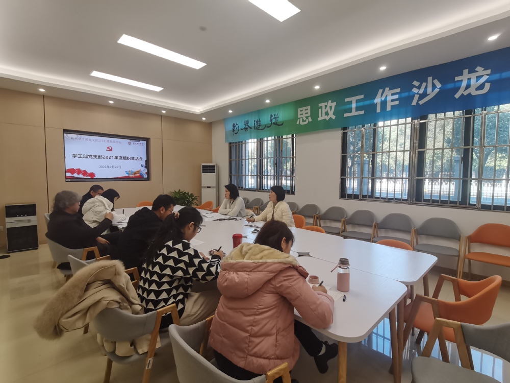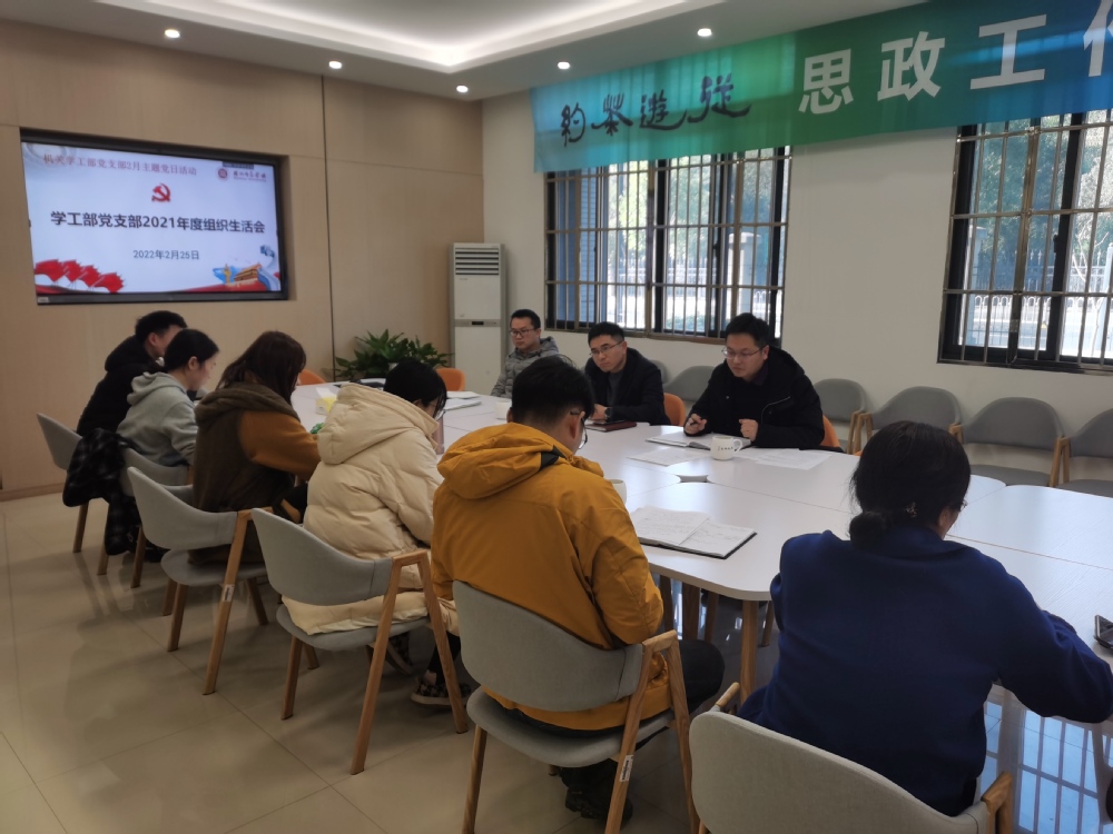 2月25日,学工部党支部召开2021年度组织生活会。组织生活会分两个党小组进行,校党委副书记丁敢真以普通党员身份参加会议。