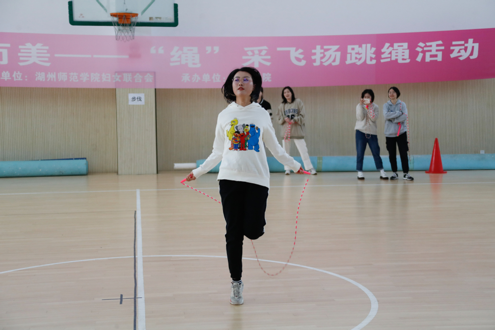 为接棒冬奥、冲刺亚运、掀起校园共建共享亚运健身运动热潮,增进女教职工、女大学生之间的交流互动,近日,我校妇女联合会举办因“妳”而美,“绳”采飞扬跳绳主题活动,来迎接第122个“三·八”国际妇女节。活动邀请我校体育学院曾作为国家队队员获得世界跳绳比赛冠军的郭思化老师现场指导。
