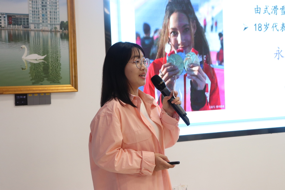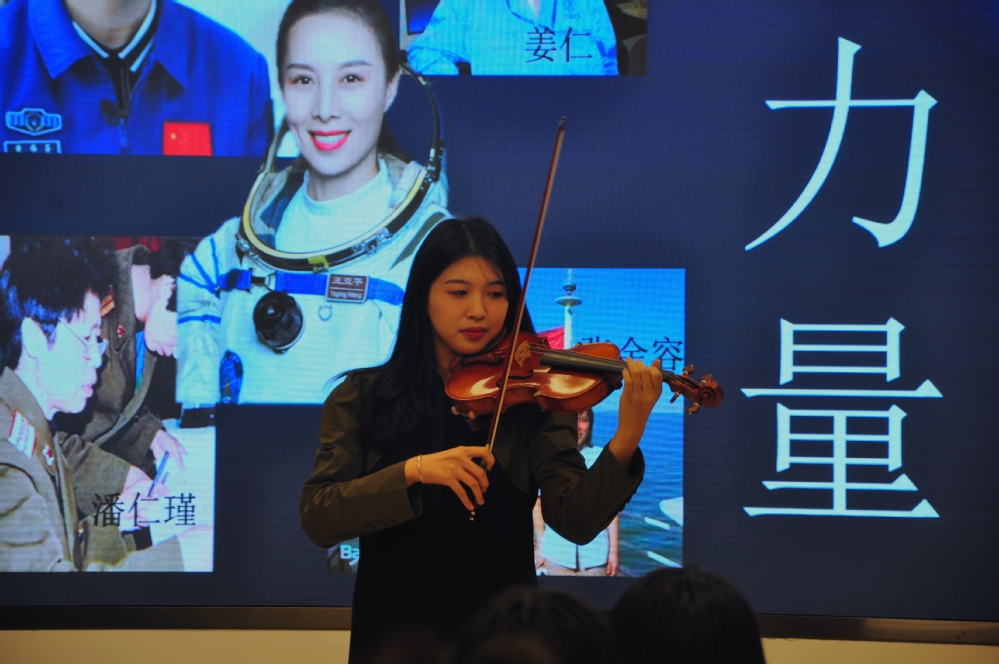 讲座后,由五位女大学生代表分享心中的巾帼榜样。她们分别从圆梦冬奥的冠军徐梦桃讲述起,到奇迹之夜,冠军加冕的中国女足再到与“毒”共舞的“人民英雄”陈薇将军,到遨游星辰大海的航天女英雄王亚平,最后到为爱坚守的“七一勋章”获得者张桂梅校长。这些“铿锵玫瑰”们无一不展现着伟大的“她力量”!期间,音乐学院的马乐同学用小提琴演奏了一曲悠扬动听的《茉莉花》将气氛推向了高潮。最后,分享会在歌曲《一起向未来》的合唱中落下帷幕。