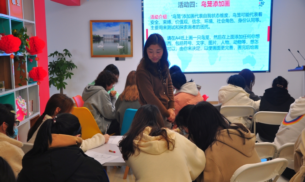 本次分享会邀请了教师教育学院心理系副主任刘盛敏,为现场师生带来题为《了解女生,关爱女生》的讲座。活动中,刘盛敏以画为媒,让在场的女大学生用即兴涂鸦的形式参与其中。绘画结束后,刘盛敏从心理学角度分析她们的性格,助其深度认识自我、了解自我,并增进相互之间的了解。刘盛敏表示,即兴涂鸦往往会将内在的心理世界外化为图,通过图画的形象,我们有机会看到画中对自身人格特征、内在心理状态的投射,是深入探索自我,遇见未知自己的一次很好的机会。