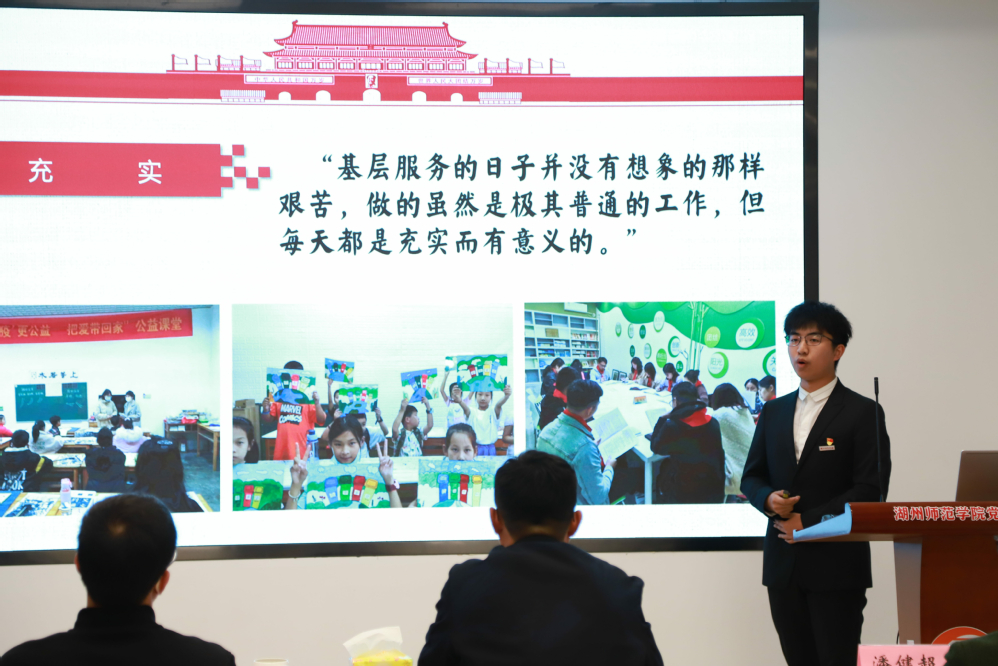 信息工程学院的陈佳威同学结合自己的专业以《数字化,在“浙”里》为题,讲述了自己在浙江省丽水市当脱贫攻坚志愿者时的所见所闻,同时分享了我校各类数字化平台给广大师生带来的便利,充分向大家展示了数字化平台的重要作用及浙江省数字化改革取得的巨大成效。