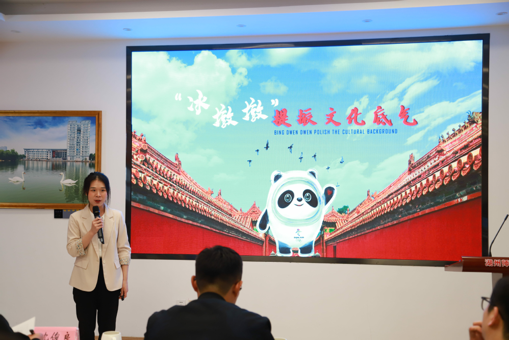 马克思主义学院的邹莹同学分享了冬奥会“顶流”——冰墩墩的形象、名字、外形设计理念,总结其走红原因是得益于中华五千年传统文化积淀和中国民族的文化自信。同时她也介绍了我们身边的“墩墩守护者”——我校刺绣大师何晓霞老师,用自己的刺绣作品为坚守和发扬中华文化做出努力和表率。她呼吁每一个人都应胸怀文化自信,争做文化的守护者、传播者、繁育者。