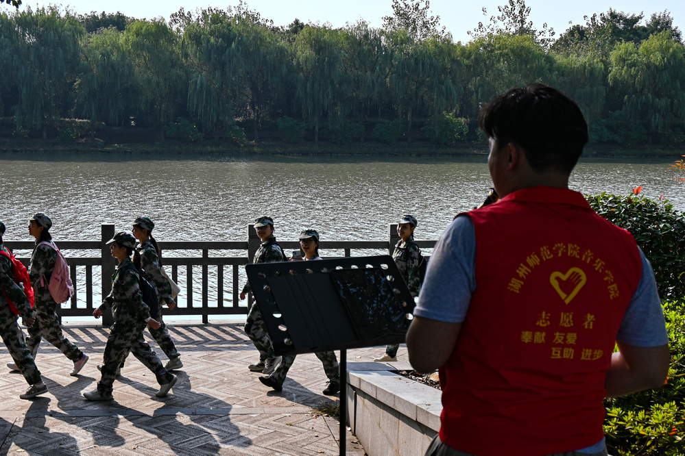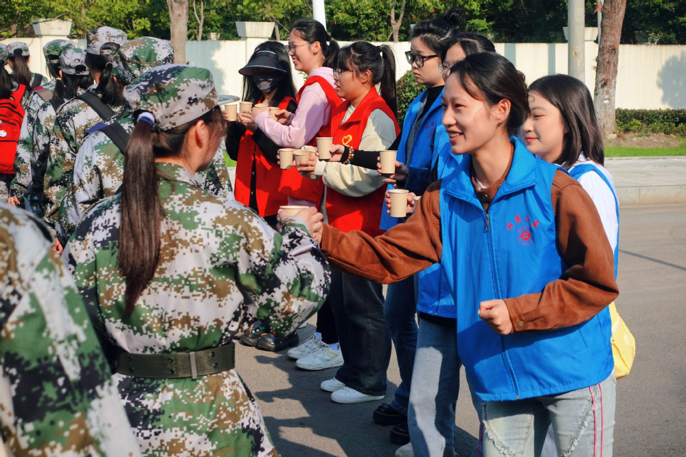 在队伍行进沿途,学校提前筹备,精心安排物资补给,做好医疗保障工作,与小虎狮们温暖同行。见习的新生也成为途中一抹可爱的志愿红。此外,本次拉练增设“文工团”,为小虎狮们鼓舞士气。文工团的气魄澎湃在微风里,谱出一道道音符,化作一首首乐曲,小虎狮们伴着音乐,踩着节拍,迈步向终点前进。
