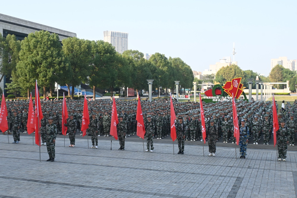 全体新生于早上8点整队集结完毕,队列井然,蓄势待发。军训团团长郭东旭号令出发,军训领导小组成员和全体教导员随队前行,为小虎狮们保驾护航。