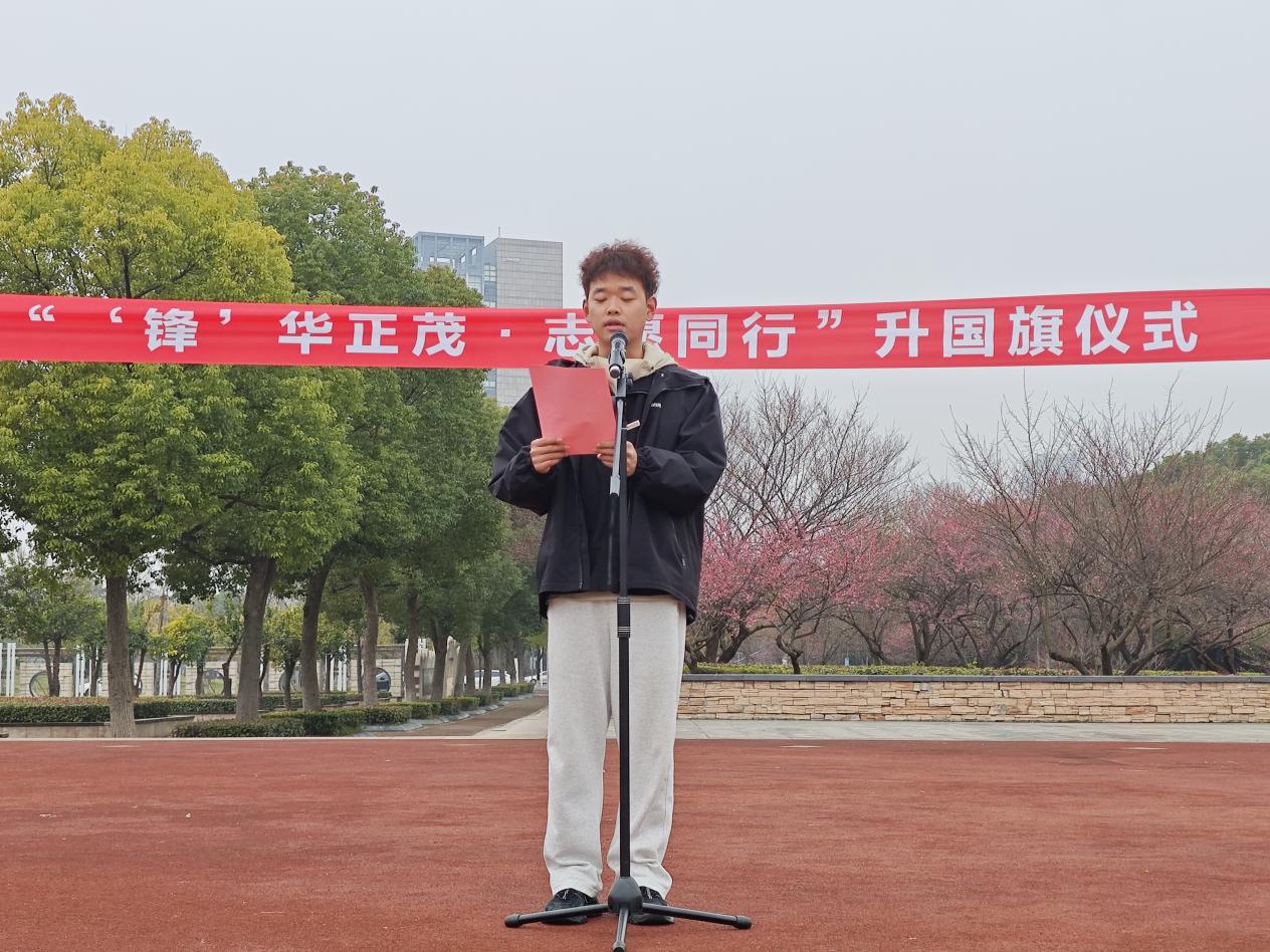 随后,湖州市“最美志愿者”称号获得者、优秀学生代表楼炯楠同学作国旗下讲话。他结合自身参与社区服务、国际志愿项目的经历,讲述了“奉献、友爱、互助、进步”的志愿精神如何指引他成长。“雷锋精神永不褪色,它在每个时代都有独特的价值和意义”,他号召同学们以点滴行动践行雷锋精神,用青春书写新时代的志愿篇章。真挚的讲述引发全场共鸣,掌声经久不息。