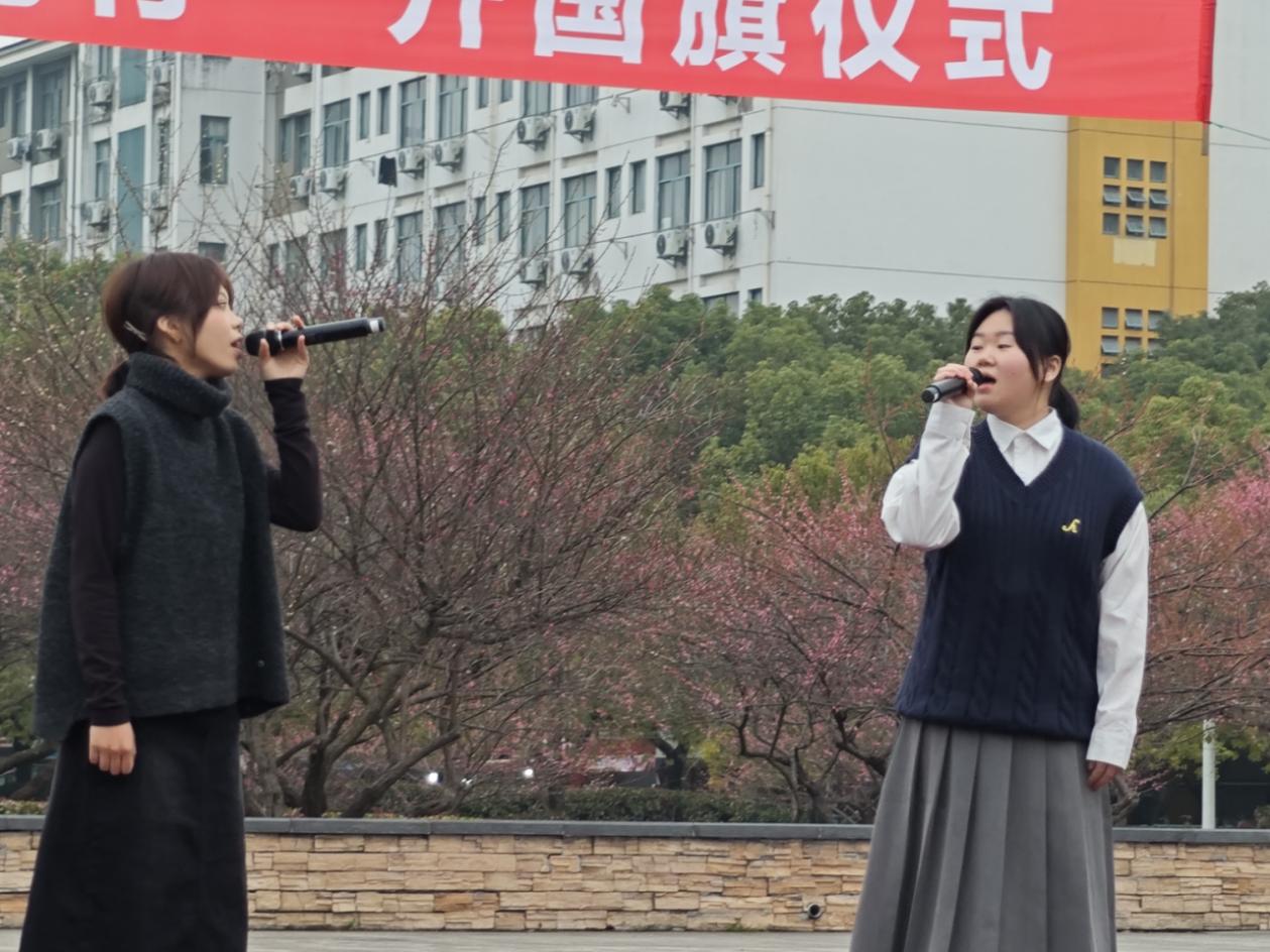 最后,音乐学院学生代表张晗语、盛楦婷以一曲《让世界充满爱》将仪式推向高潮。悠扬的旋律与温暖的歌词交融,唱出了对和谐社会的向往,也传递出青年学子携手同行、奉献爱心的坚定信念。至此,本次升旗仪式画上了圆满的句号。