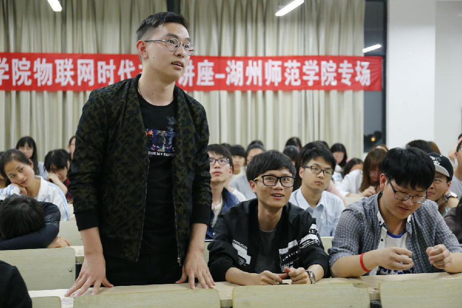 最后,他结合实例阐述了现在物联网专业的大学生毕业就业方向以及现状,告诫同学们要有明确的定位并且提早为自己的人生做出规划,并针对同学们提出的问题一一进行详细解答。