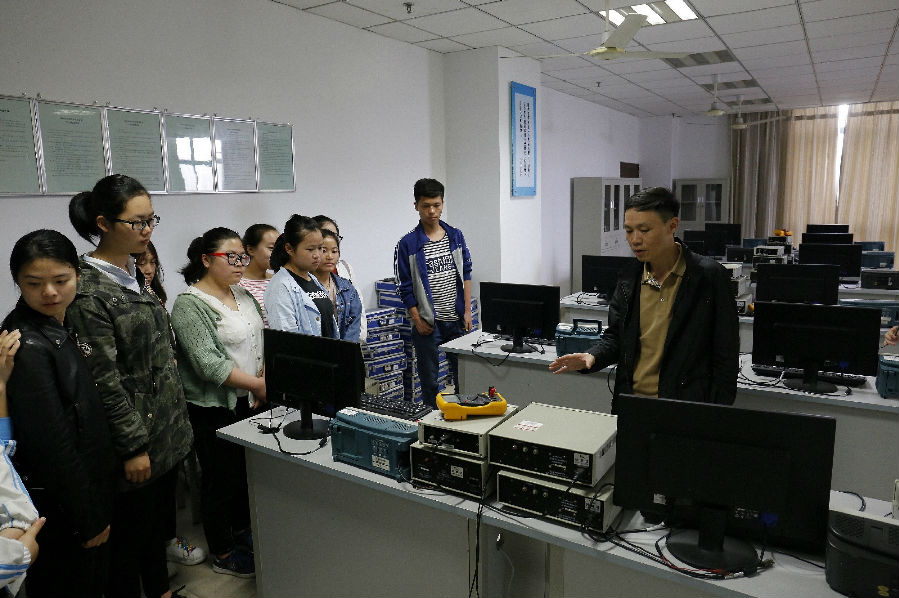在实验参观环节,学生们有秩序参观了电子工艺实验室、电子工程综合实训室、通信原理实验室、物联网创新实验室及学院重点实验室等实验场所,通过实验人员和专业老师的讲解,学生们加深了对我院实验教学中心和重点实验室建设情况、实验分室布局、实验环境和条件等的了解,也进一步加强学生对计算机和电子信息类专业的进一步认识。