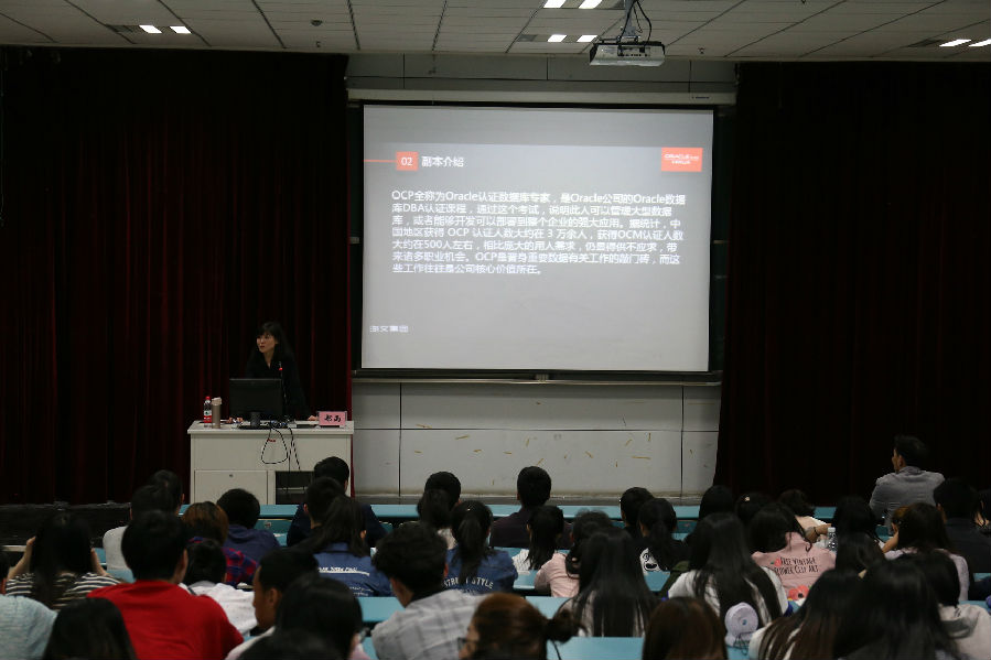 首先,郑雨老师向同学们介绍了Oracle公司基本情况,并就JAVA系统开发,Oracle数据库管理、认证考试等教学资源详细进行了讲解。随后,郑老师根据学生的疑问,对公司在IT优米app官方下载入口手机版、课程开设的具体安排进行了说明,并邀请学院师生到上海甲骨文云计算基地进行研讨参观,并表达双方在品牌专业建设、教改、课改等领域进行合作交流的意向。