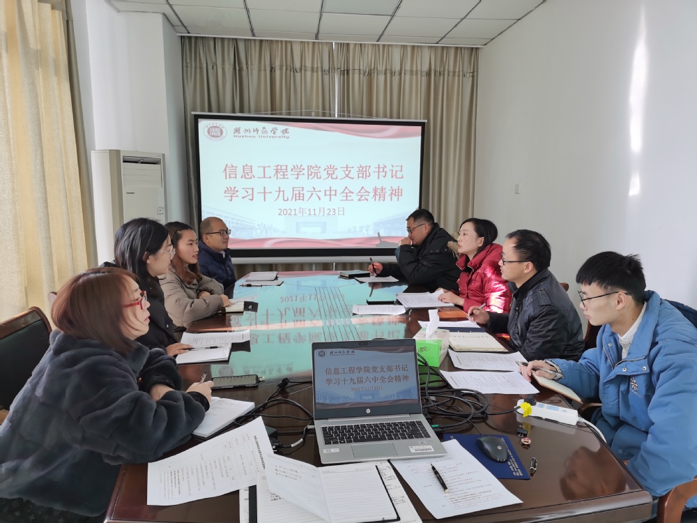 近日,信息工程学院把学习宣传贯彻党的十九届六中全会精神作为一项重大政治任务,精心组织、周密安排,多层面、多渠道开展党的十九届六中全会精神的传达与学习,确保会议精神入脑入心、落地落实。