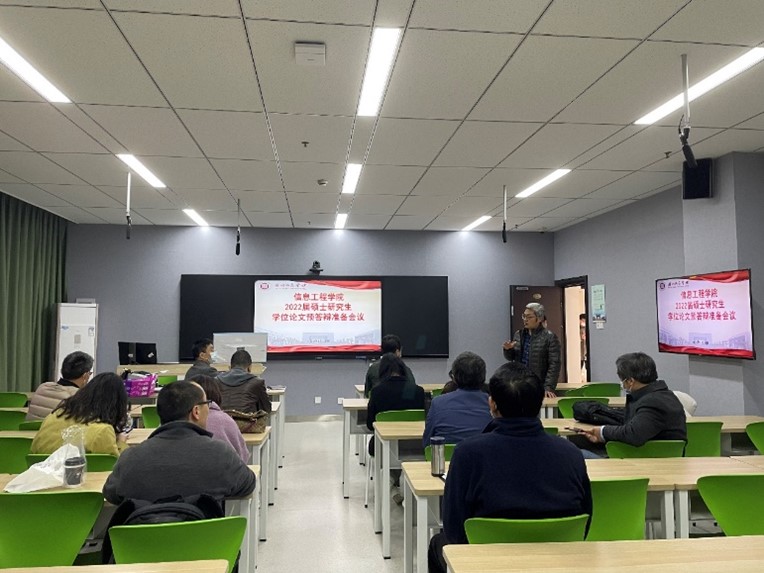 为加强研究生培养过程环节管理,提升研究生培养质量,2022319日上午,信息工程学院在30号楼举行了2022届专业学位硕士研究生学位论文预答辩会。我院2022届专业硕士研究生(国内)30余人悉数参加,分4个小组同时进行,采取导师回避制。预答辩开始前,胡文军院长向各位评审专家介绍了预答辩工作注意事项,研究生院冯火红副院长参加了答辩前会议,并对此次预答辩会进行了指导。