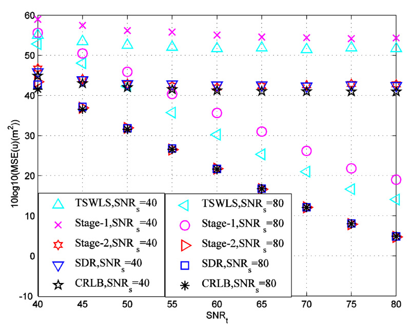 该成果提出了一种未知发射源信息的多输入多输出(Multiple-Input Multiple-Output,MIMO)雷达系统目标定位方法,该方法通过部署接收机和广泛存在的基站,无需基站的地理位置与时钟偏差信息,即可实现目标位置的精确定位,具有良好的应用前景。由于雷达系统目标定位问题的非线性特性,传统数值计算方法难以保证估计结果的全局收敛。因此该成果中也设计了两种有效的目标位置估计算法:代数解析法与凸优化松弛法,以保证结果收敛以及精度性能。同时分析比较两种算法的计算复杂度与精度性能,研究结果发现,在目标位置估计方面,两种不同算法的定位精度在高信噪比时都能接近最优性能。