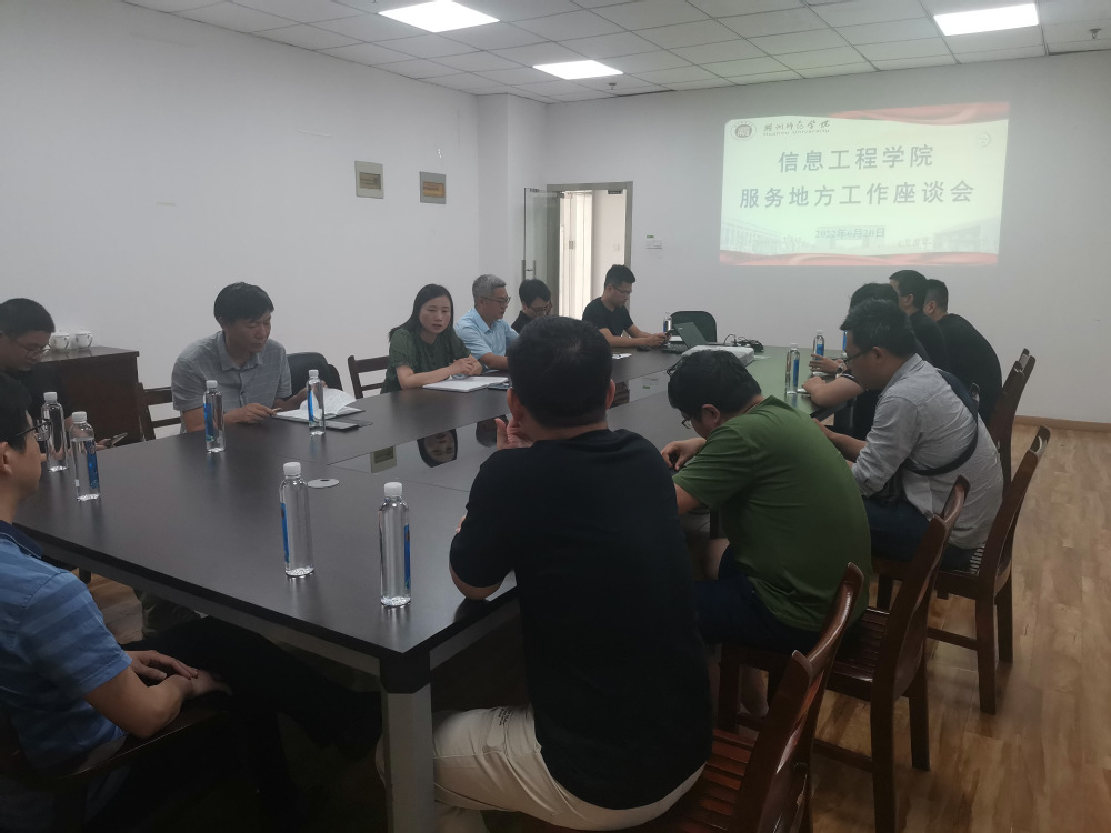为进一步推动学院服务地方工作,提升学院教师服务地方能力,6月20日下午,信息工程学院服务地方工作座谈会在31幢903会议室召开,学院院长胡文军、横向科研项目负责人和青年教师代表参加座谈会,会议由学院党委书记陈利华主持。