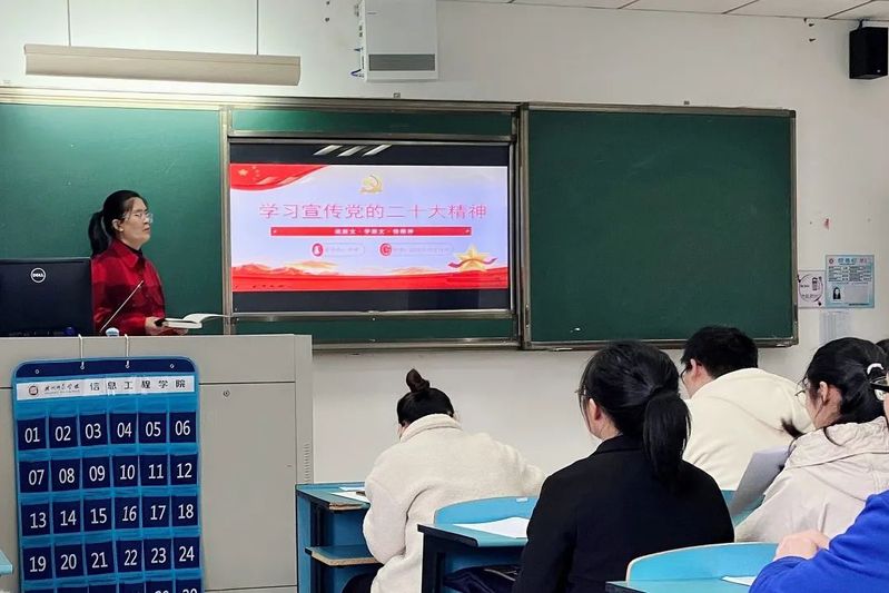 为深入学习宣传贯彻党的二十大精神,引导学生全面、准确、深刻领悟党的二十大的精神实质和丰富内涵,近期,信息工程学院党委副书记项瑜以“读原文、学原文、悟精神”为主题,为学生党支部开展党的二十大精神专题党课宣讲活动。