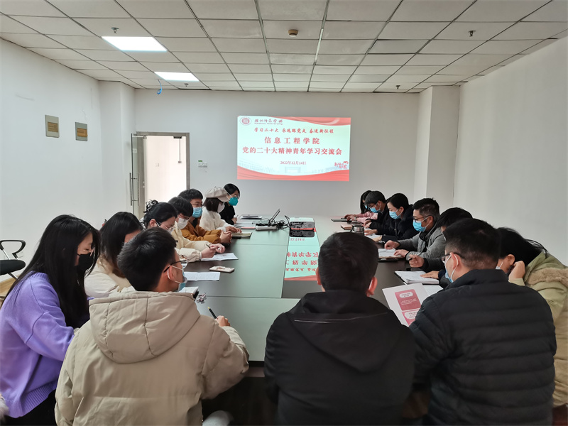 为深入学习领会党的二十大精神,引导青年师生坚定理想信念,感悟初心使命,激励青年师生在新征程中踔厉奋发、勇毅前行,奉献青春力量,12月14日下午,信息工程学院举办“党的二十大精神青年学习交流日”活动。学院领导班子成员、青年师生代表参加。