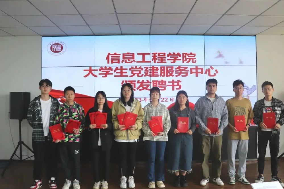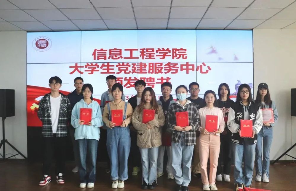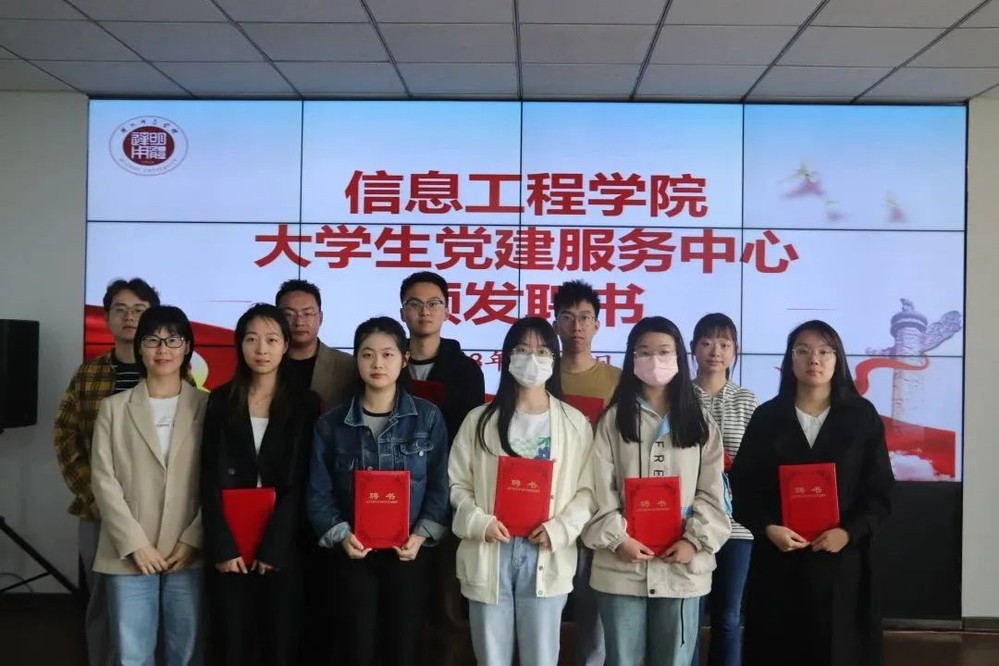 颁发聘书环节。由赵亚敏老师与叶超老师向党建服务中心全体成员和各支部支委发放聘书,对学生干部一年来的付出给予鼓励。