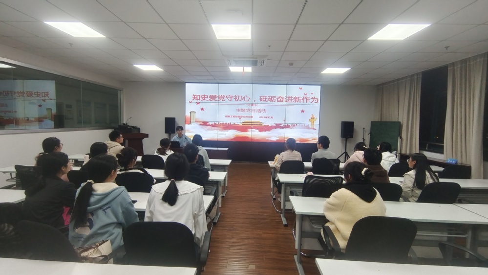 知史爱党、知史爱国。认真学习党史、新中国史,是广大党员增加党性修养的重要途径,也是坚持道路自信、理论自信、制度自信、文化自信的前提与基础。为进一步加强党员的党性修养和精神内涵,推动广大党员在“学党史、明思想、强党性”上取得新的成效,11月中旬,信息工程学院学生党支部开展“知史爱党守初心,砥砺奋进新作为”主题党日活动。