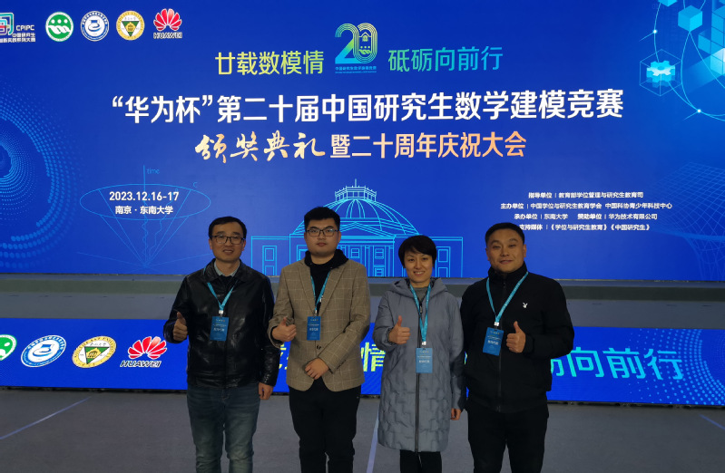 12月16日至17日,第二十届中国研究生数学建模竞赛“数模之星”决赛及颁奖典礼暨二十周年庆祝大会在东南大学举行。我院竞赛组织与指导团队教师代表胡海龙、张雄涛、申情,以及全国一等奖获奖学生参加了此次大会。