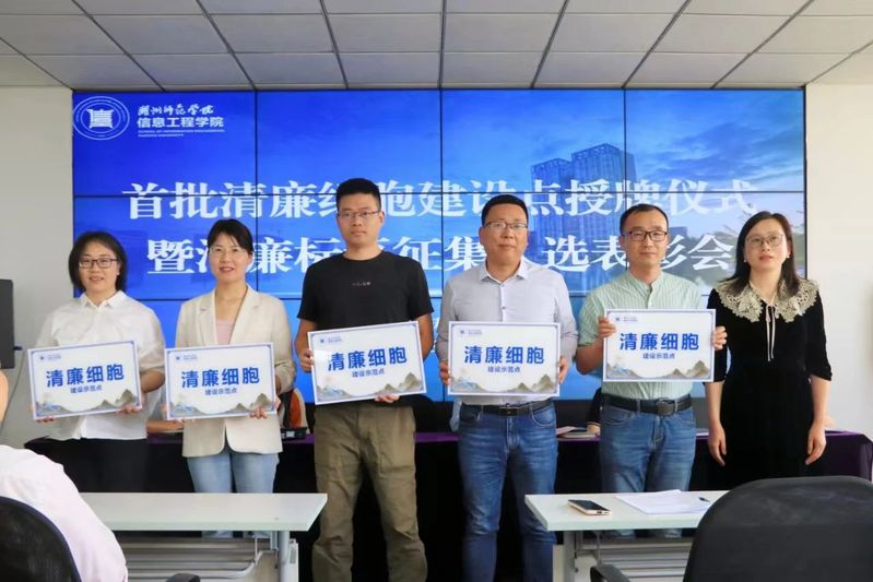 2023年底,信息工程学院获评全校首批清廉单元示范点、全校首个“清廉学院”示范点,清廉学院建设初见成效。2024年初,学院根据工作实际制定并印发了《信息工程学院清廉细胞建设点创建实施方案》(湖师院信党发〔2024〕2号),创新性推动清廉学院建设走深走实。5月15日,学院举行首批清廉细胞建设点授牌仪式暨清廉标语征集入选表彰会。学院领导班子出席仪式,全体教职工参加。