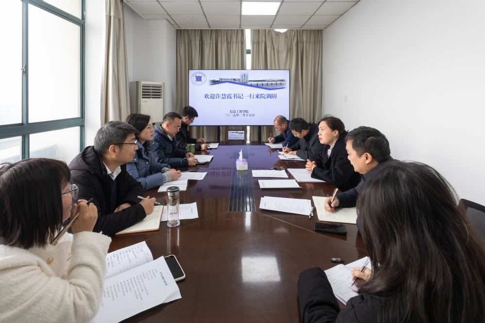 2月17日上午,学院联系校领导、校党委书记许慧霞在党校办、教务处等部门相关领导的陪同下到信息工程学院调研指导新学期开学工作,学院全体班子成员参加座谈交流。