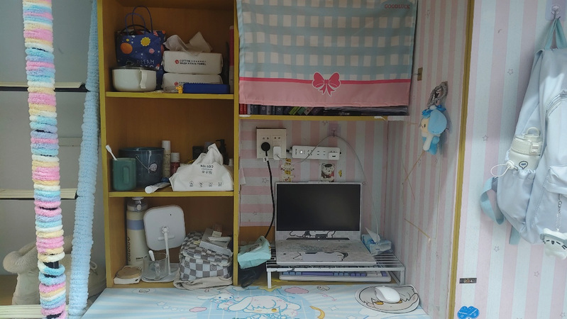 推开28-526的房门,原木色调与清新绿植映入眼帘,阳光透过纱帘洒在手绘墙面上,宁静而治愈。成员们利用废旧纸箱改造收纳,墙上挂满共同回忆的照片,每一处细节都流淌着“家”的温暖。评委在走访时称赞:“这里不仅美观实用,更充满情感温度,真正体现了寝室如家的意义。”