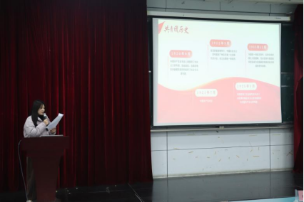 王紫涵以“共筑团梦,照亮未来”为主题,从共青团核心定位切入,系统讲解八大核心板块内容。她阐释了共青团“党领导的先进青年群团组织”等三大核心定位,梳理了从1920年上海社会主义青年团组建到1957年定名“中国共产主义青年团”的发展历程,解读了团徽、团旗、团歌内涵,明确了团员义务权利与入团流程,引导学子重温初心、向先进组织靠拢。课堂上,同学们认真记录、积极互动,学习氛围浓厚。